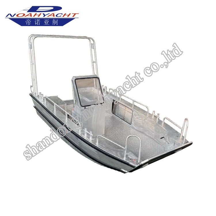 鋁合金登陸艇可以用作駁船或者救援船,工作艇。前面可開(kāi)合的斜坡設(shè)計(jì),可以進(jìn)出ATVS,叉車(chē)等,也可以作為駁船用于載貨。廣泛用于崎嶇、偏僻的海岸線較長(zhǎng)的